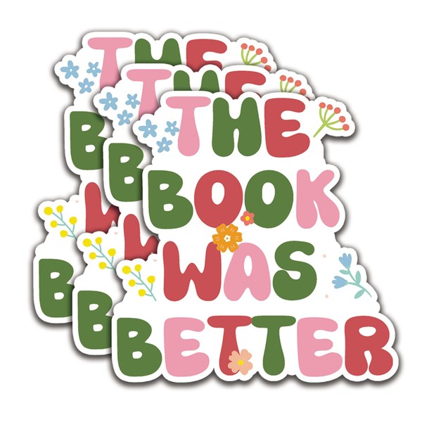 (3Pcs) The Book was Better Stickers Read Books Sticker Reading Decal Waterproof Vinyl Stickers Adult for Laptop Kindle Car Tumbler Water Bottle Mug Phone Notebook Helmet - Size 3”x2,9”