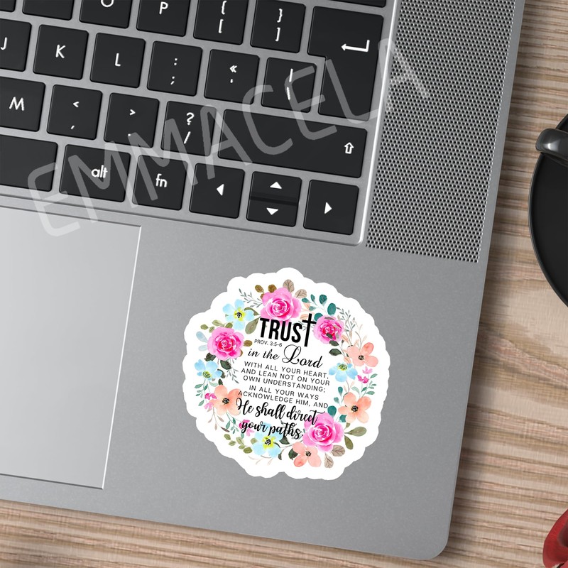(3PCS) Trust in The Lord with All Your Heart Proverbs 3:5-6 Sticker Christian Faith Sticker, Religious Sticker, Waterproof Vinyl Decal for Books Laptops Tumblers Water Bottles and More, Size 3" x 3"