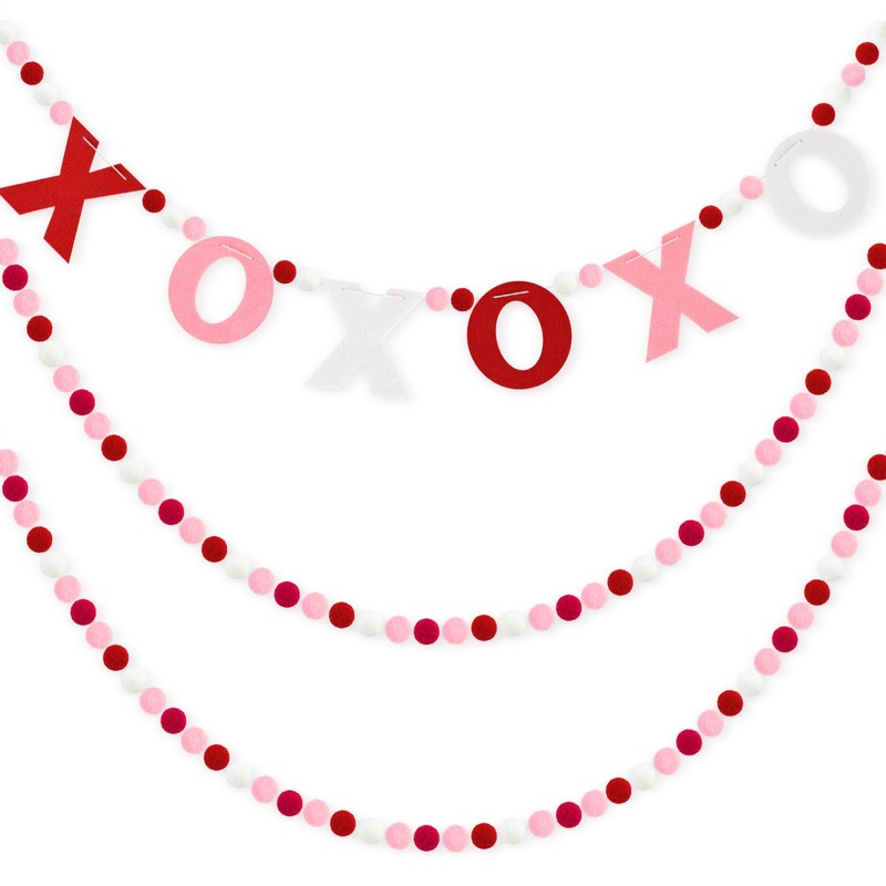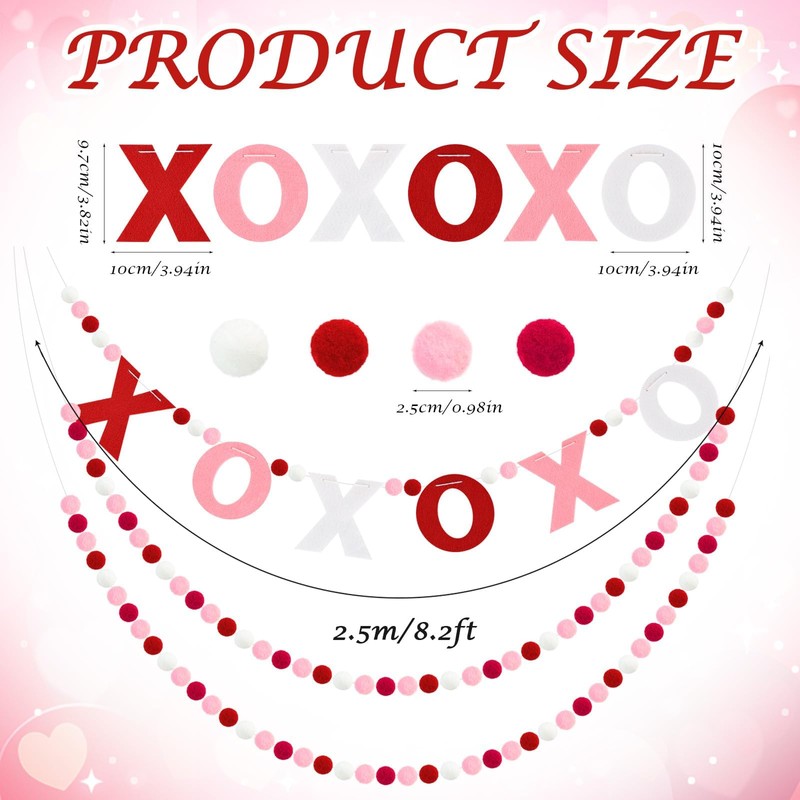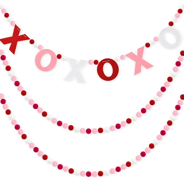 3Pcs Valentine's Day Felt Ball Garland Red Pink White I Love You Heart Banner 8.2Ft Romantic Hanging Bunting Garland for Valentine Lover's Day Anniversary Wedding Party Supplies (XOXO)