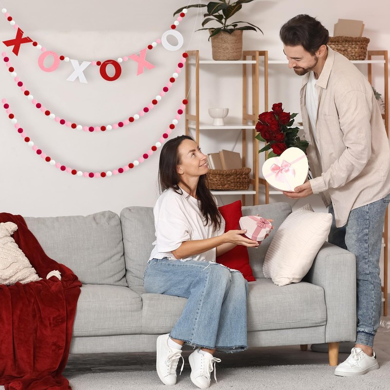 - Package Includes - 3 strings of Valentine's Day banner, including 1Pcs "I LOVE YOU" felt banner and 2Pcs pom ball banner. The combination of rose red letter with red pink white pom balls works better.