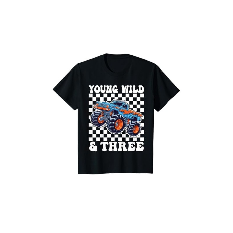 3rd Birthday Monster Truck Young Wild And Three 3 Year Old T-Shirt