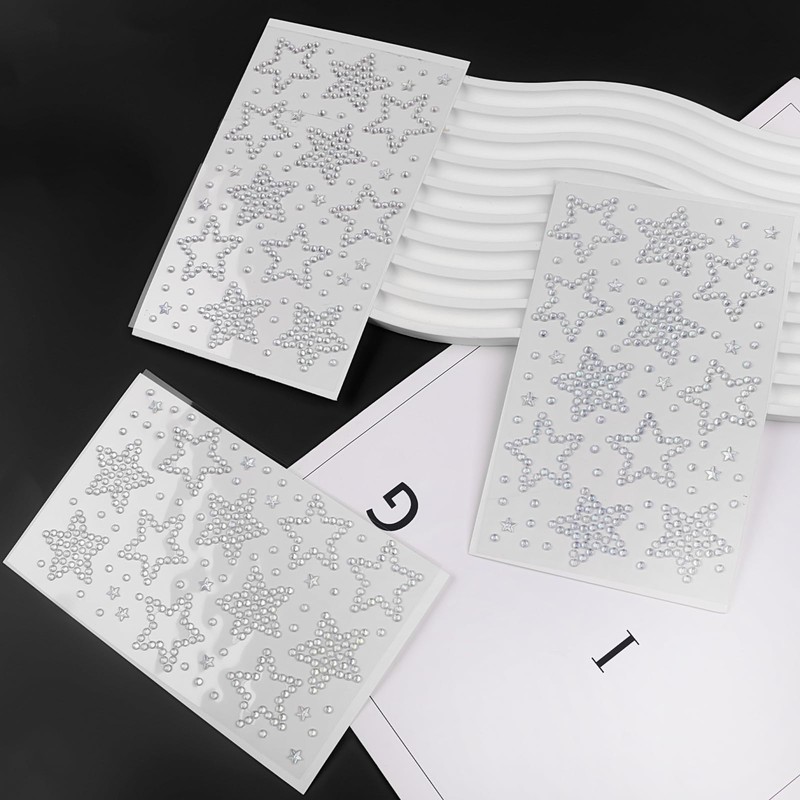 Size: 9.5*15.5cm/sheet, 3mm gem, 6mm heart star, 20mm hallow heart star