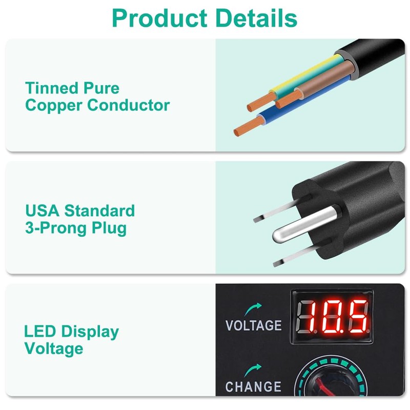 - 【Adjustable Power Supply】Input: AC 100~240V, 50/60Hz ; Output: DC 3~24V Adjustable, Max 3A 72W ; It can supply with any voltage between 3~24V, such as 3V 4V 4.5V 5V 6V 9V 12V 16V 19V 21V 24V, etc and any amp less than 3A, such as such as 300mA, 500mA,1A, 1.5A, 2A, 2.5A, 3A. LED display will show the output voltage, if the current drawn exceeds 3A, the power supply will be damaged soon. Never overload! (Tip: After plugging in the power supply, the display will delay for 8 seconds before displaying the volts.)