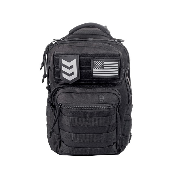 3V Gear Posse EDC Sling Pack, 7L - MOLLE Compatible Sling Bag with Hidden Pockets, Ambidextrous Strap and Padded Laptop Sleeve - Rugged 600D Polyester Small Tactical Bag - Black