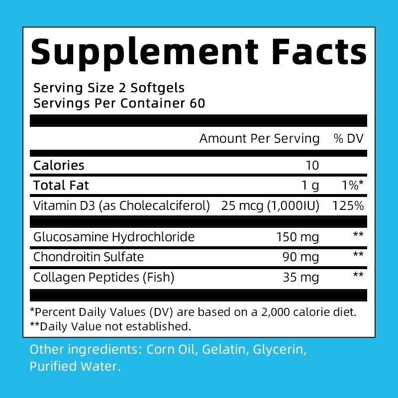 Ingredients: Glucosamine, Methylsulfonylmethane,Collagen Peptide,Bovine Powder Type I& III