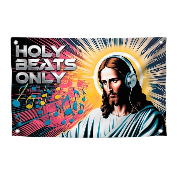 3x5 Feet Jesus Tapestry Polyester Flag "Holy Beats Only" with Four Brass Grommets - Tapestries for College Dorm Room Meme Banners Flags for Bedroom - Tapestrys Christian Religious Cool Wall Flag