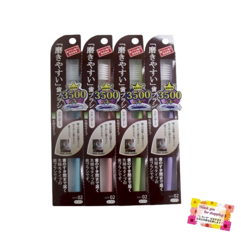 【歯のすき間まで届く先細毛タイプです!】 磨きやすい歯ブラシ スタンダード 毛先が細いタイプ 日本製 4色アソート 全長約17cm 【2個セット】