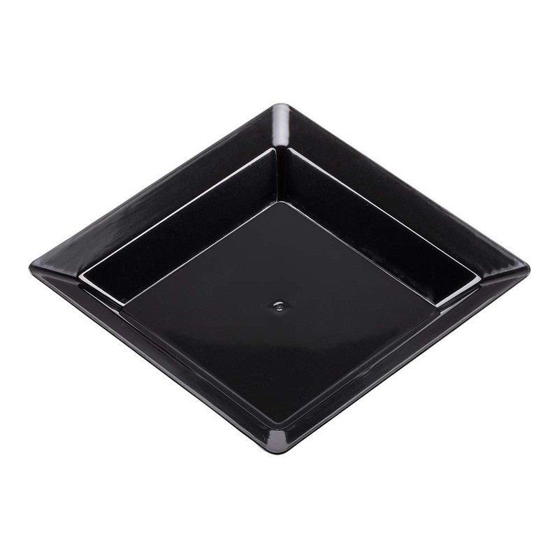 Show off decadent dishes with our Black Square Plastic Plates. Constructed from high-quality plastic, these small dinner plates provide easy cleanup and are 100% recyclable. With a square modern design, these durable plastic dishes instantly upgrade your scrumptious appetizers, entrees, and desserts. Use these small plastic plates to stylishly serve tasty ricotta gnocchi at your restaurant, or to beautifully display savory seafood pasta at your next catering event. Featuring a sophisticated black finish these chic plastic dishes complete the look of any decor or venue. Measuring 4.3 inches long and wide, these black plastic plates are sold in a 100 count box.