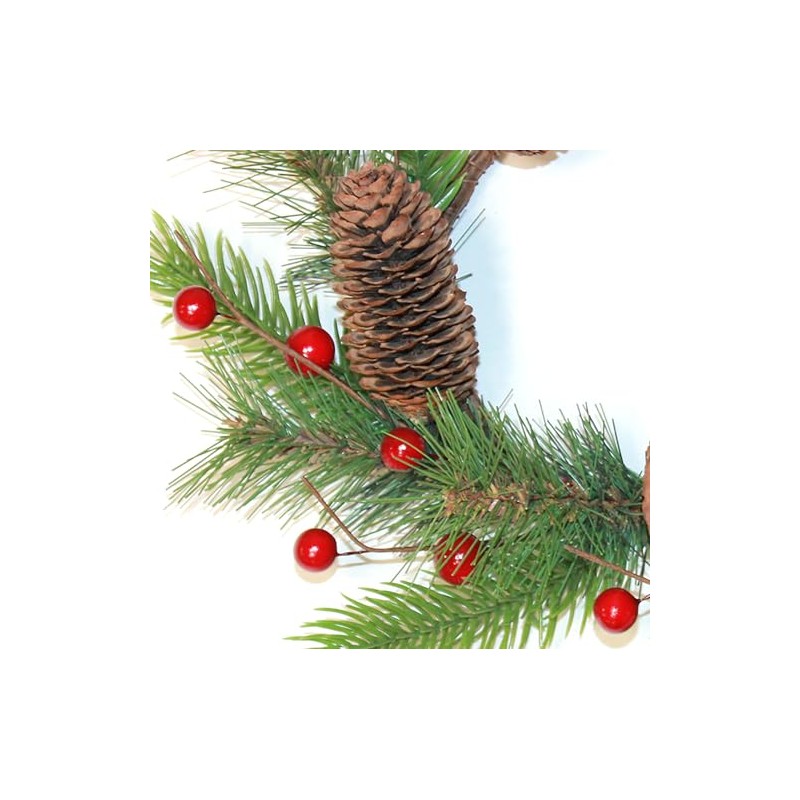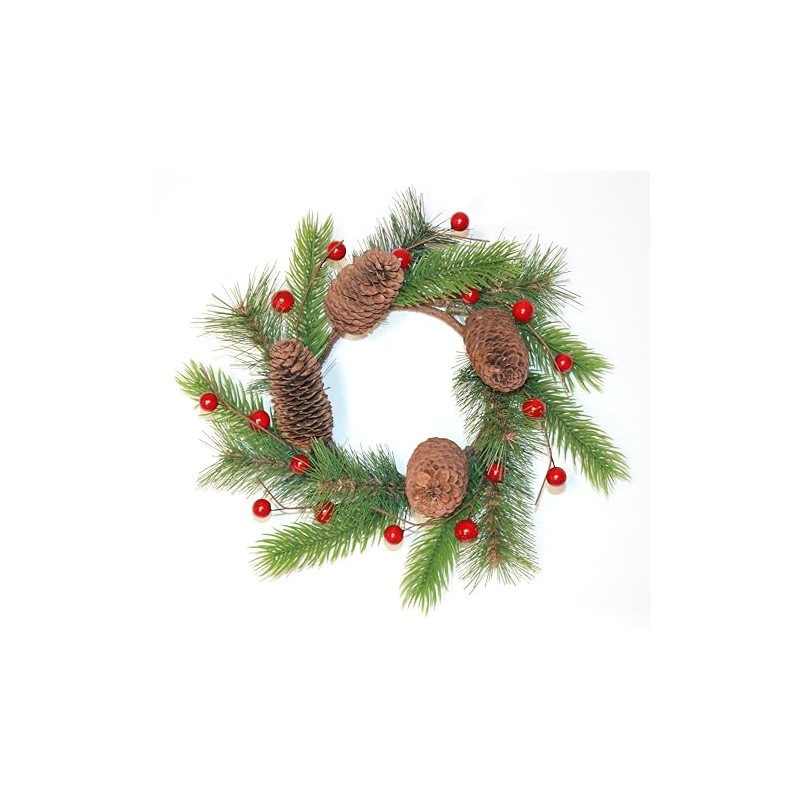 4.25" Inner Diameter Christmas Pine Cone, Pine, Berry Pillar Candle Ring, Set of 2