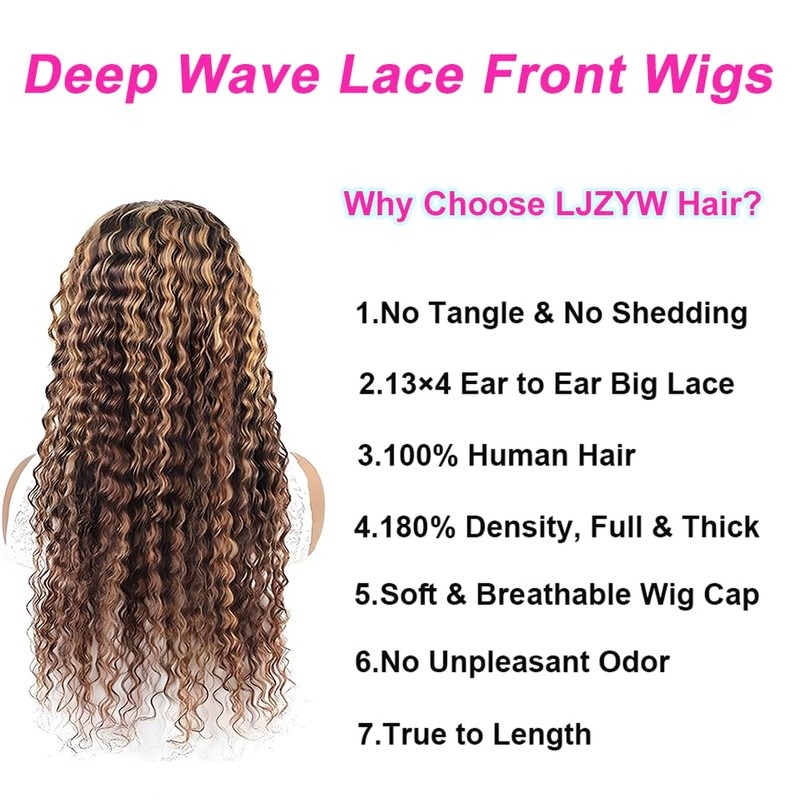 - [ About Texture ]: Highlight Deep Wave Lace Front Wig Human Hair, Beautiful and Easy Care, Please Comb the Curly Wig with Wide Toothed Comb or Hand to Avoid Shedding.