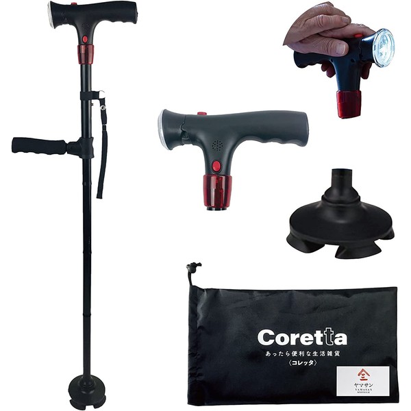 4点 4本足 4点杖 折りたたみ杖 杖 【 男女兼用 高さ 76〜87cm(身長目安148~170cm)】【折りたたみ可能で軽量 長さ調節可能でLEDライト・収納袋付き】 折りたたみ つえ 歩行器 介護杖 介護 ステッキ 男性用 女性用 年賀 お中元 敬老の日 母の日 父の日 ギフト 京都宇治ヤマサン