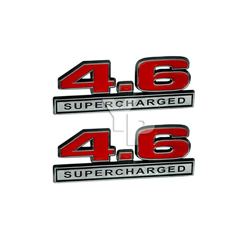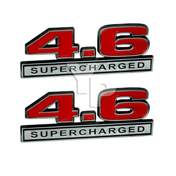 4.6 Liter Engine Supercharged Emblems in Red & Chrome - 5" Long Pair