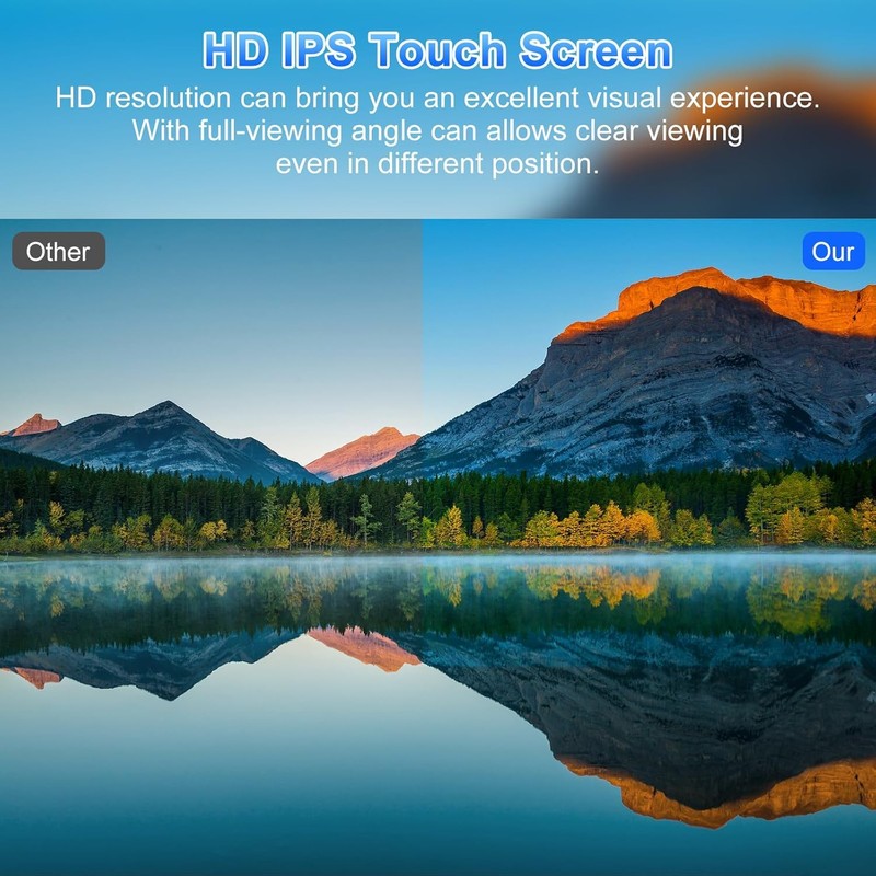 - 【High Definition Touch Screen & Split-Screen Mode】Featuring a 1280x720 IPS HD touch screen, this product offers a crystal-clear display with vibrant colors and sharp details. With the innovative split-screen mode, which enables you to run two apps side by side on the screen, allowing you to listen to music while navigating or make a phone call while browsing the web. Say goodbye to switching between apps and enhance your productivity on the go.