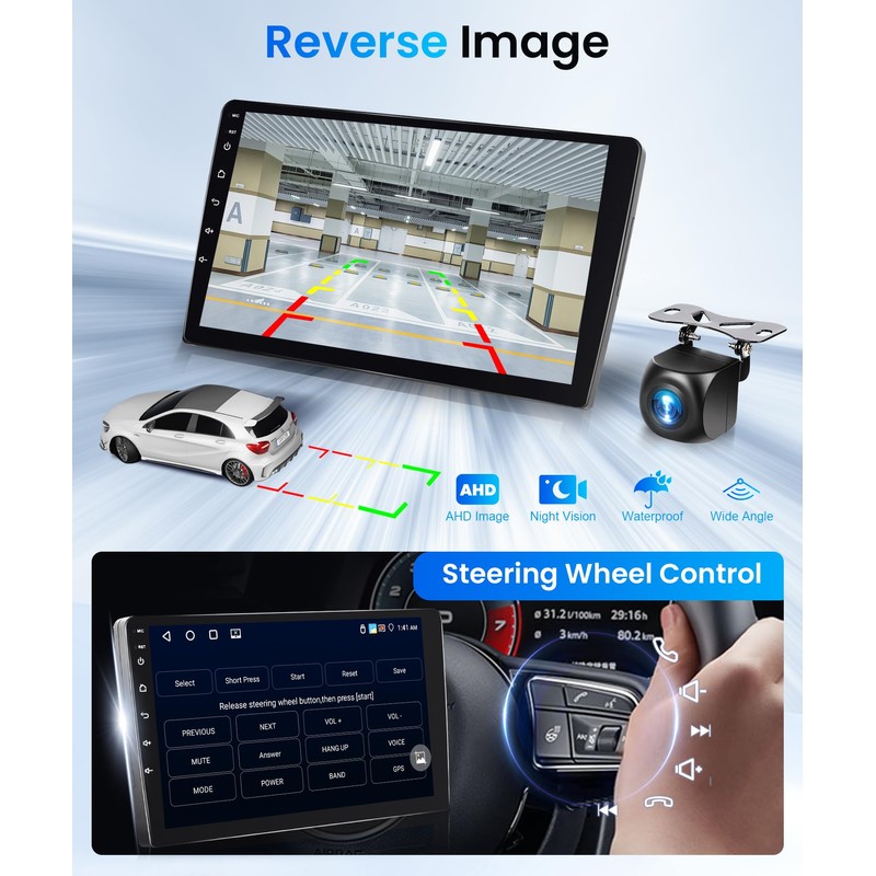 - AHD Backup Camera and Steering Wheel Control: The 10.1 inch car display for radio 2012 Ford Fusion featuring a rearview camera input. When in reverse gear, the screen automatically switches to the reverse interface, ensuring safe and convenient maneuvering even in adverse weather conditions. Additionally, take advantage of steering wheel control for the car radio, enabling more convenient and safer operation while driving.