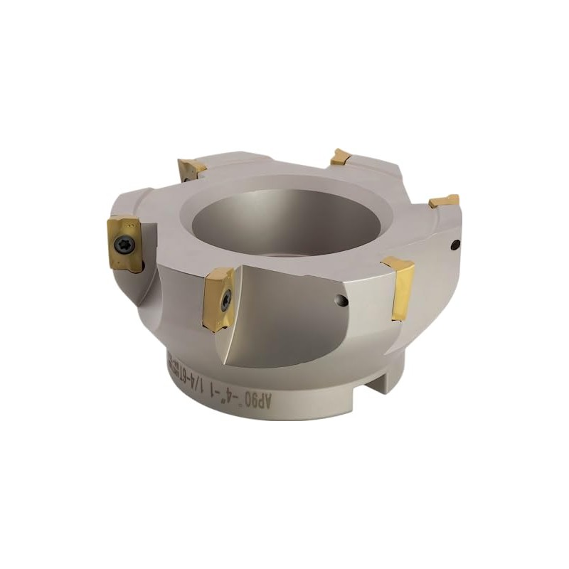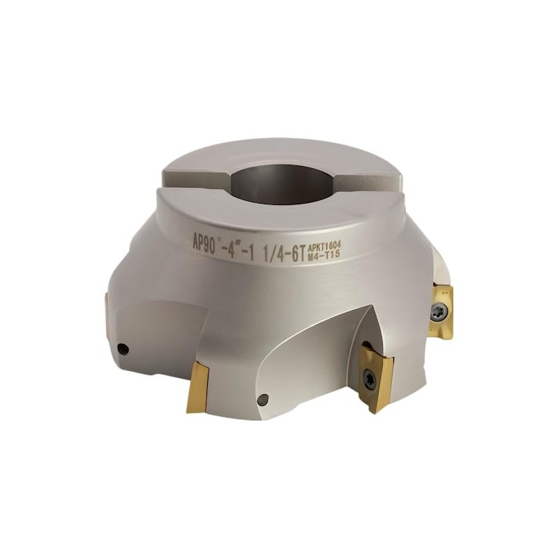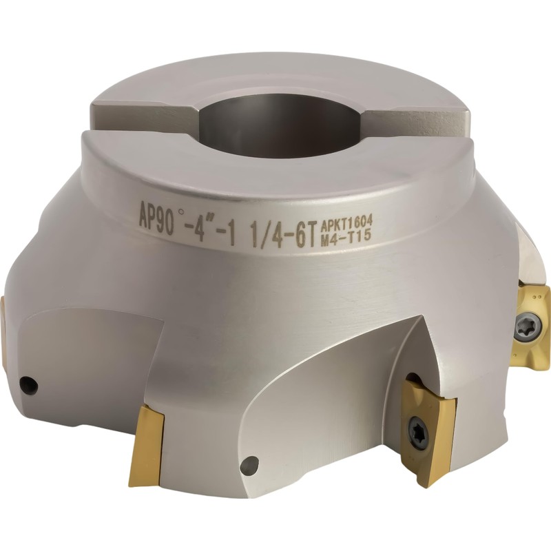 4" 90° Indexable Face (Shell) Mill, for Square Shoulder Milling, 1 1/4" Arbor Hole Diameter, 6 Flute, with 6 pcs APKT1604 Carbide Inserts