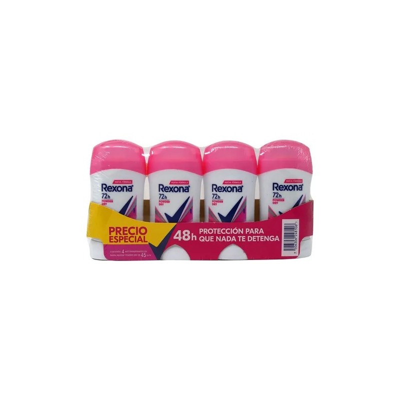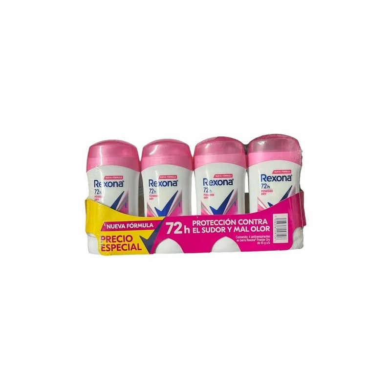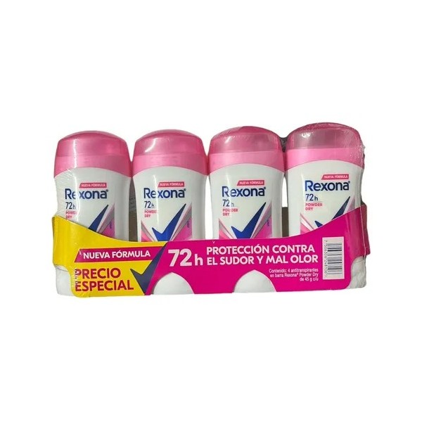 4 Antitranspirantes En Barra Rexona 72h Power Dry De 45g C/u