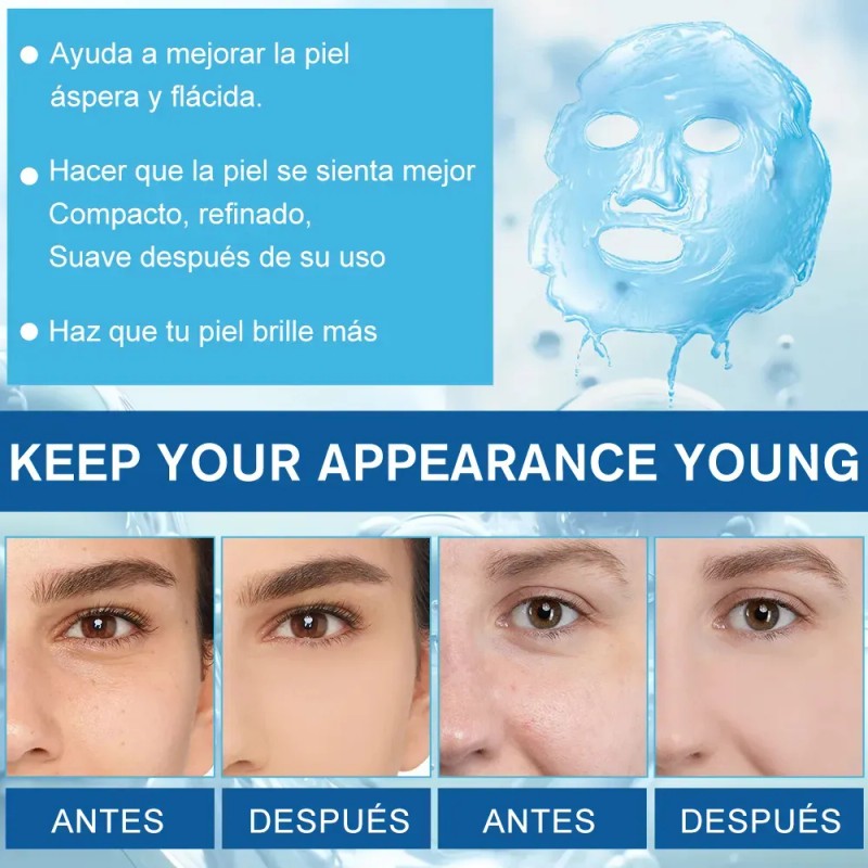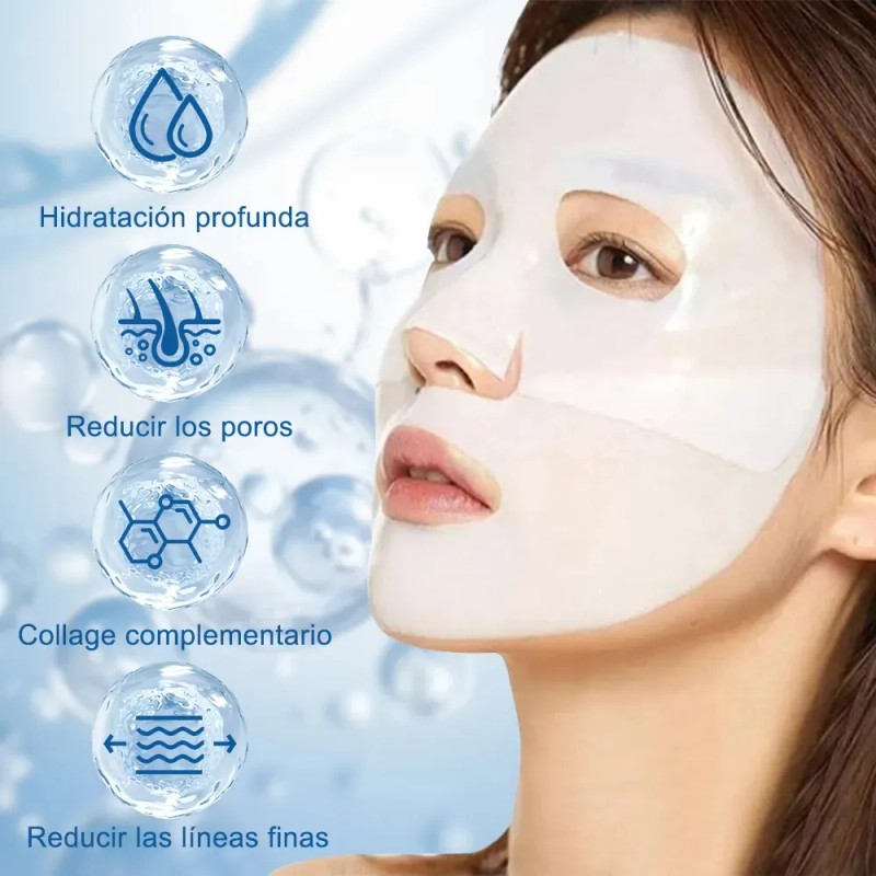 Efectos duraderos: la mascarilla de colágeno utiliza tecnología de penetración avanzada para maximizar la absorción de nutrientes y penetrar profundamente en la piel. La mascarilla de colágeno proporciona una hidratación duradera, haciendo que la piel sea más suave y uniforme con el tiempo.