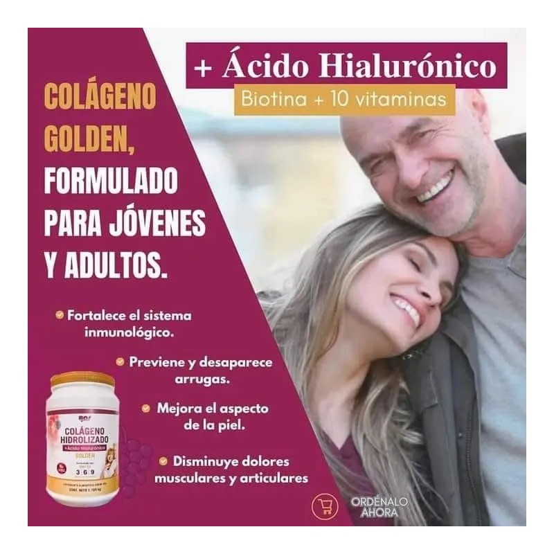 Lleva tu rutina de bienestar al siguiente nivel con este pack de 4 botes de Colágeno Hidrolizado Golden con Ácido Hialurónico, diseñado para quienes buscan resultados visibles, duraderos y un soporte nutricional completo.