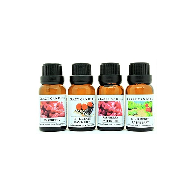 4 Bottle Set, Raspberry, Chocolate Raspberry, Sun Ripened Raspberry, Raspberry Patchouli 1/2 Fl Oz Each (15ml) Premium Grade Scented Fragrance Oils by Crazy Candles