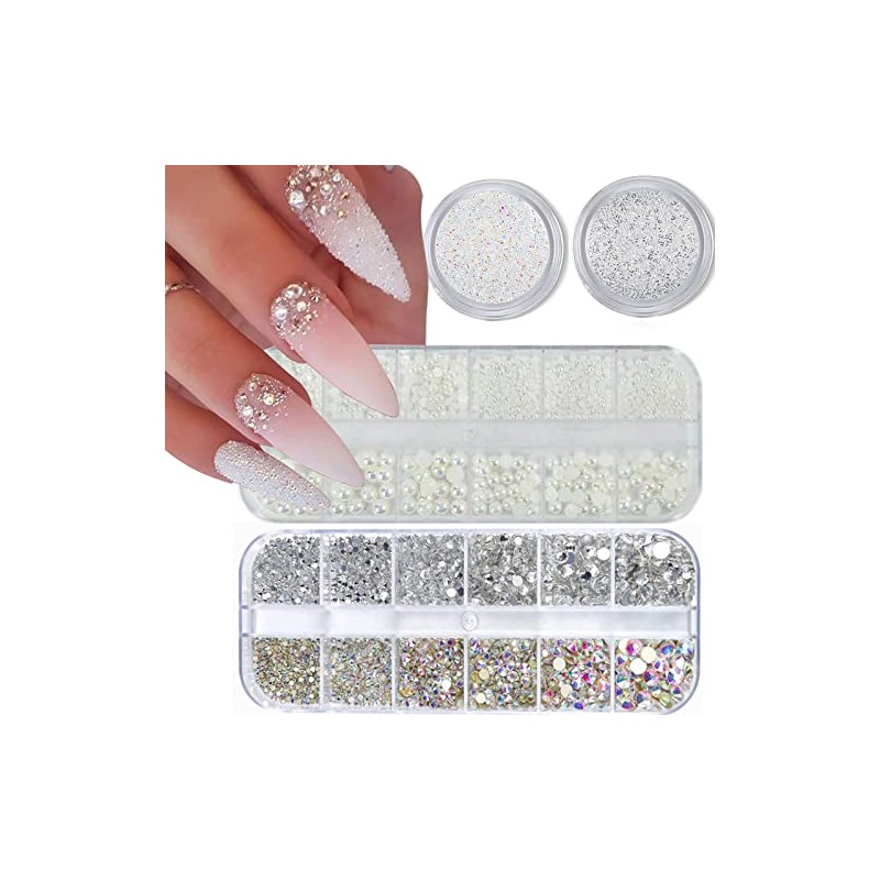 4 Boxs Nail Art Rhinestones Flatback Rhinestones Pearls Nail Charms for Acrylic Nails Crystals Nail Art Supplies Half Round Design Nail Gems Nail Pearls Nail Accessories for DIY Nail Decor.