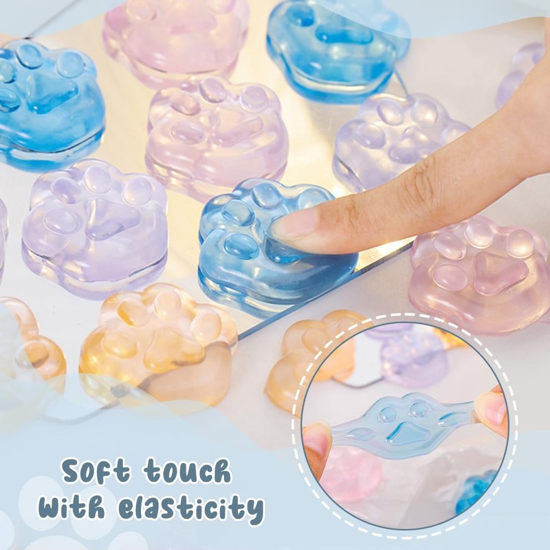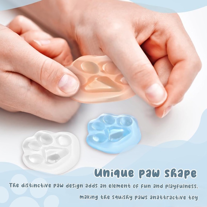 - CUTE SHAPE The set includes 1 cat paw shaped toy in 4 random colors, orange, blue, pink and purple, which is soft and cute, and will delight children's hearts.