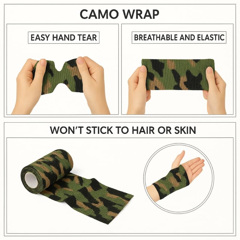 - Self-Adhering, No Clips Needed – Wraps securely by sticking to itself, not fur or skin, eliminating the need for pins, clips, or adhesives.