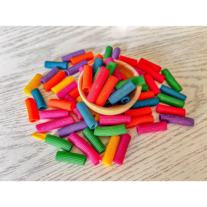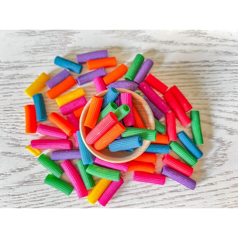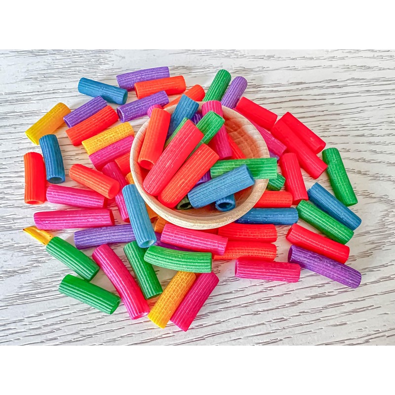 Add a burst of color and creativity to your sensory bins with our Rainbow Rigatoni Pasta! Each piece is meticulously hand-dyed with vibrant, non-toxic watercolors, ensuring that every shade pops without fading. Crafted to be taste-safe and child-friendly, this rainbow pasta is perfect for stimulating sensory play, enhancing fine motor skills, and encouraging imaginative exploration. Ideal for themed activities or as a standalone sensory experience, our elbow pasta is designed to captivate and engage, making it a delightful addition to any sensory bin. These noodles are large enough to string and make necklaces out of the noodles.