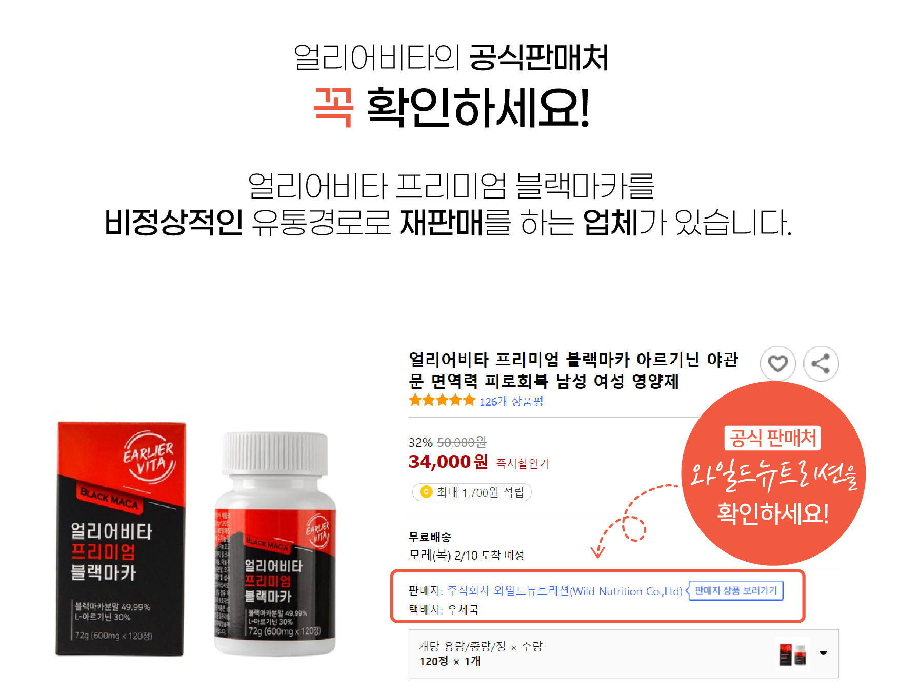 4 Early Vita Premium Black Maca nutritional supplements + free trial portion / 얼리어비타 프리미엄 블랙마카 영양제 4개 + 무료체험분증정