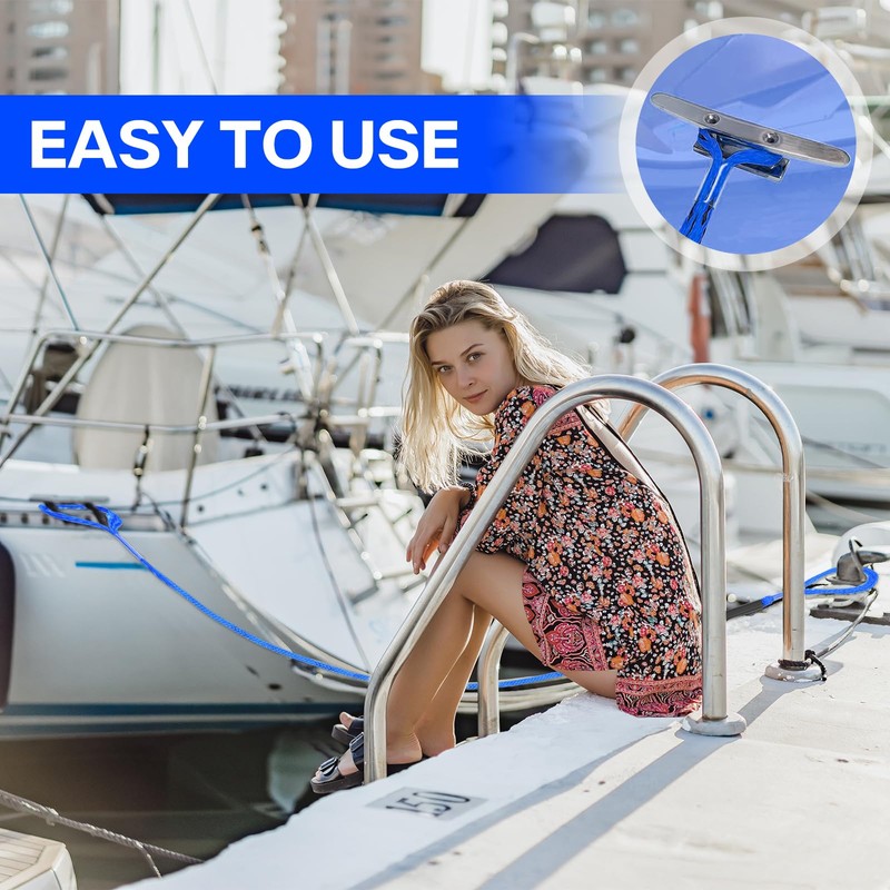 - The vibrant blue hue of our **bungee dock line** ensures high visibility in the water, while two EVA floating foam buoys protect against scratches and sinking. Even if accidentally dropped, the line is easily retrievable, preventing loss and ensuring peace of mind during your aquatic adventures.