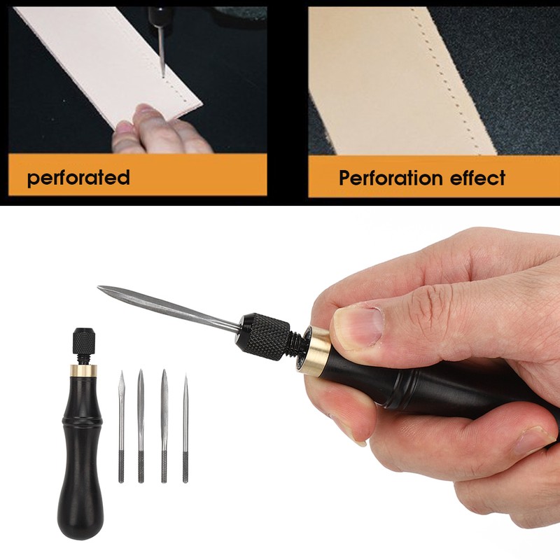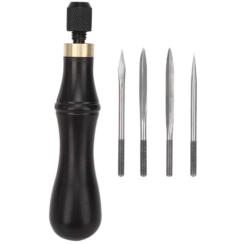 4 in 1 Stitching Awl Kit Ebony Handle DIY Leather Fabric Hand Craft Sewing Tool
