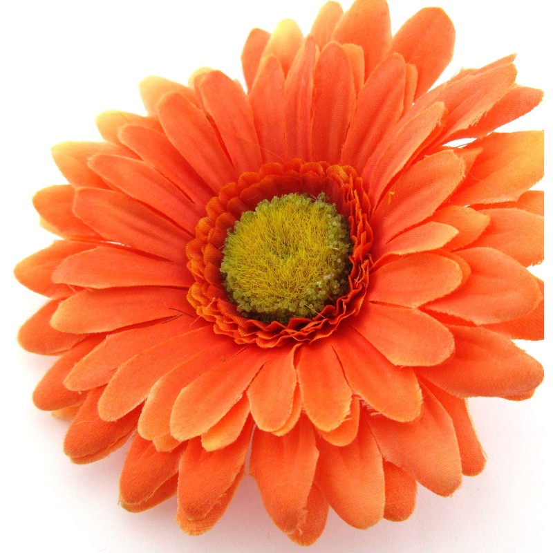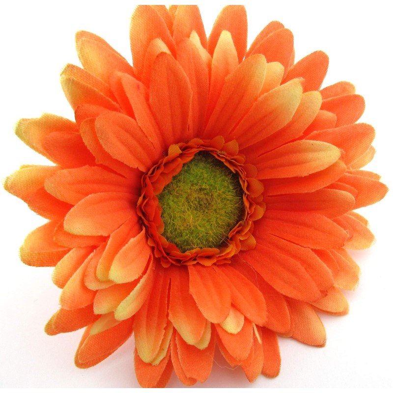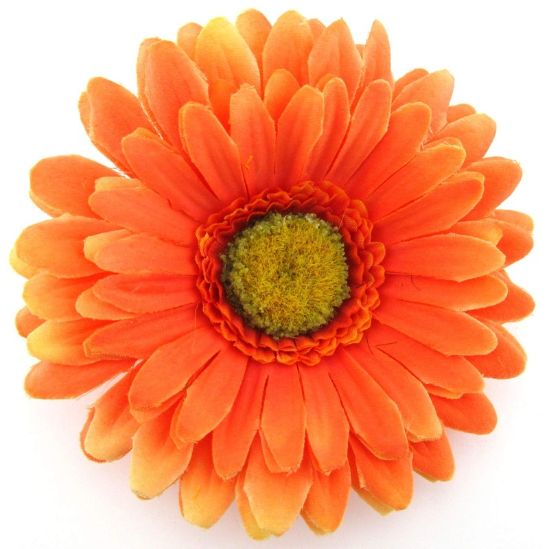4 inch Variegated Orange Gerbera Daisy Silk Flower Brooch Pin with Locking Bale