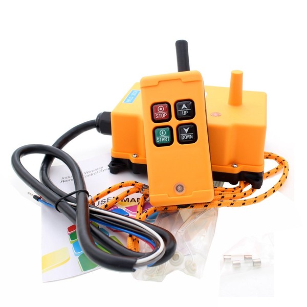 - 1. 【High quality transmitter】:This product is a yellow 12 to 24 VA C/VDC wireless crane remote with 4 buttons, barrier-free, high-performance metal contact button, good durability, IP65 level, waterproof and dust proof, making the wireless crane remote 24v 4button perform well in high oil pollution, high temperature and humidity