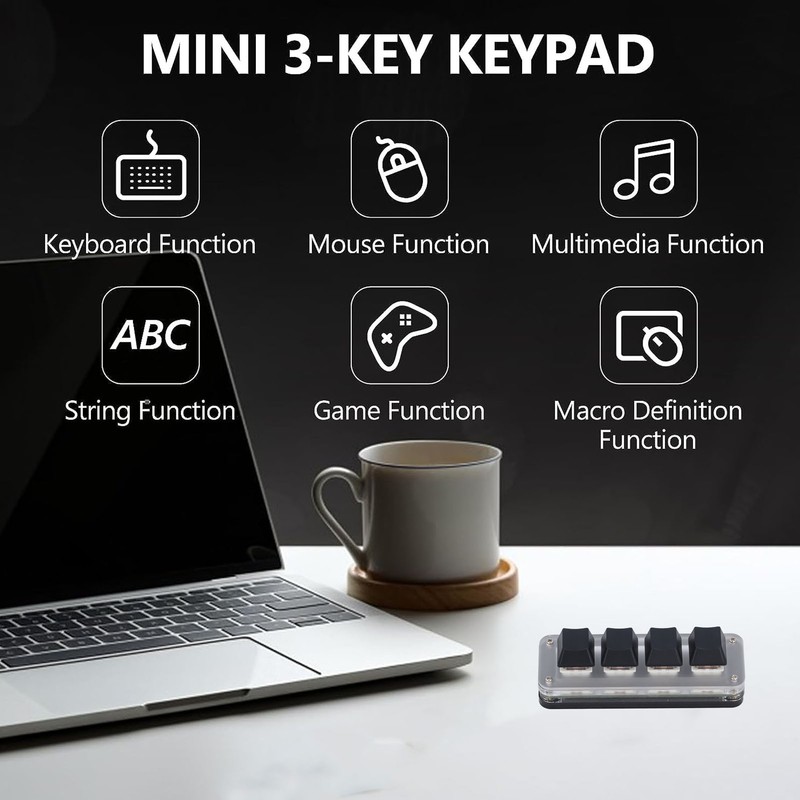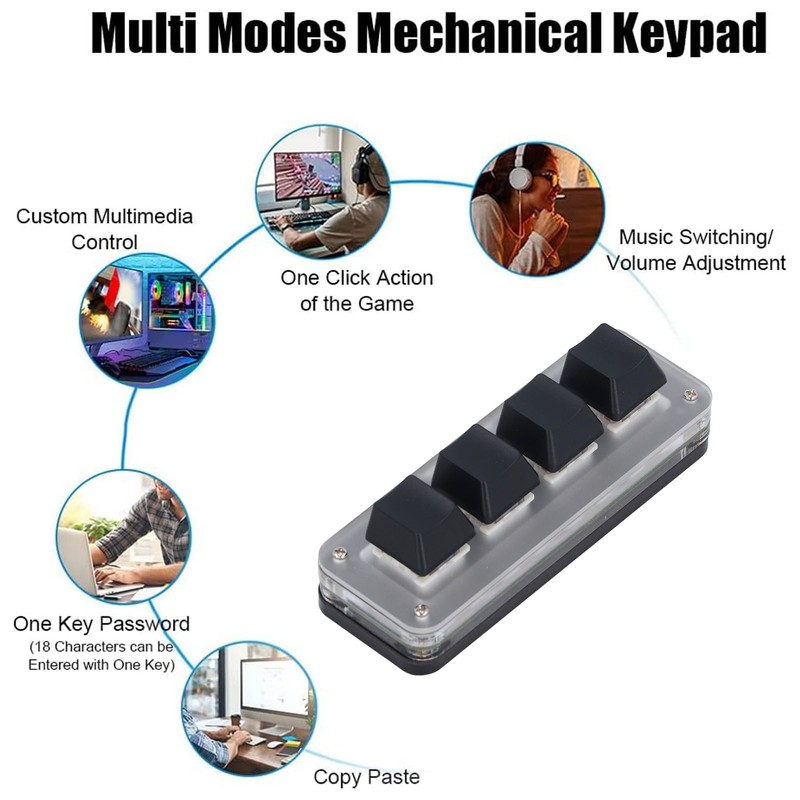 1、Support Multiple Customization: Users can set the most suitable shortcut keys according to their own habits and needs. Can be used for gaming, office, music, media, industrial control and so on. 2、Red Switch: The mechanical keypad adopts the red switch mechanical keypad, ergonomic design, making the keypad key strength and stroke very scientific, gently press to complete the operation. 3、Default Functions: The default functions of the four keys are select all, cut, copy and paste (Ctrl+A, Ctrl+X, Ctrl+C, Ctrl+V). Plug and play, no software required. Make the workflow super fast. 4、Upgrade Design: Programmable shortcuts to customize the industrial console, upgrade the red Switch for more gaming experience. Fine workmanship and perfect style. 5、Setup by Yourself: There is a special setup program, you can repeat the setup. And onboard storage, the settings are saved in the keypad, no need to set up again when changing devices.