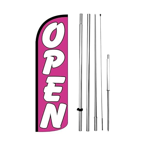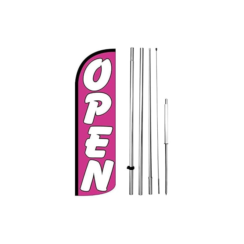 4 Less Co OPEN Windless Swooper Flag Feather Banner Sign 15' Tall Pole Spike Kit pq-h Pink