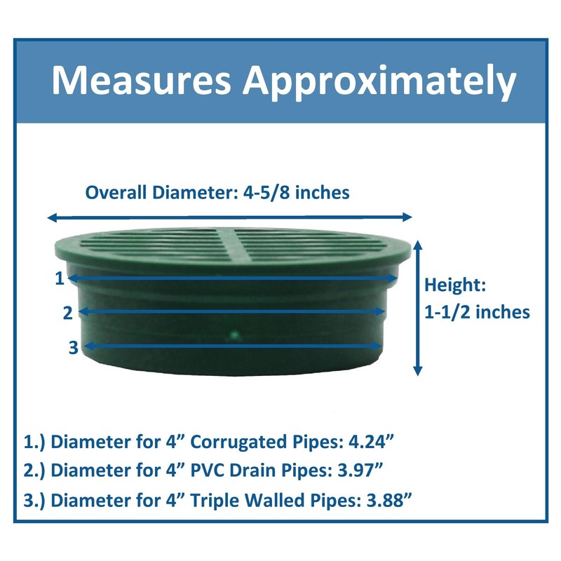 - Connects to 4 inch drainage pipes, 4 " Triple Wall & 4 " Corrugated Pipes