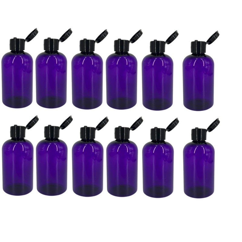 - Package Include: 12 Pack 4 oz each Purple Plastic Bottles with Black Flip Top Snap Cap