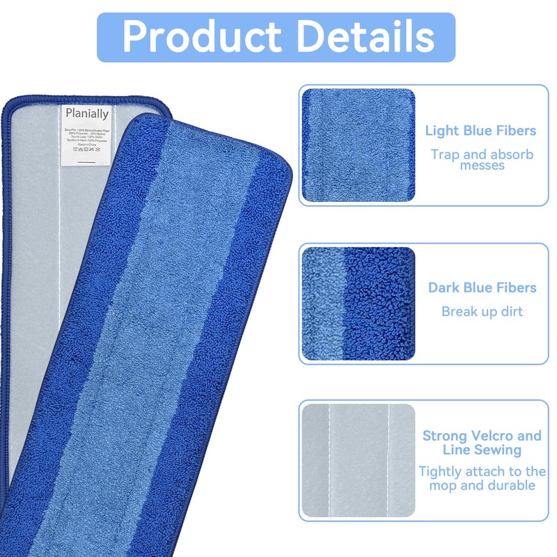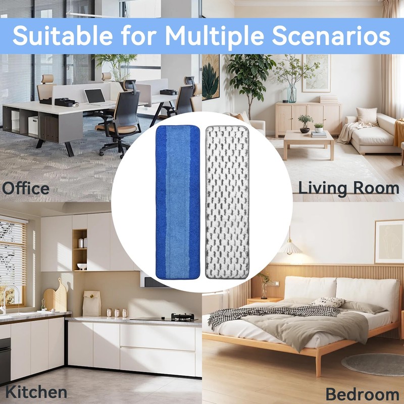 - Perfect Compatibility: These reusable mop pads are designed to fit 17-18 inches mop head, including Bona microfiber and spray mops. Pad size: 18.3 x 5.3 inch mops. They securely attach to the mop head for a seamless cleaning experience. (Mop not included)