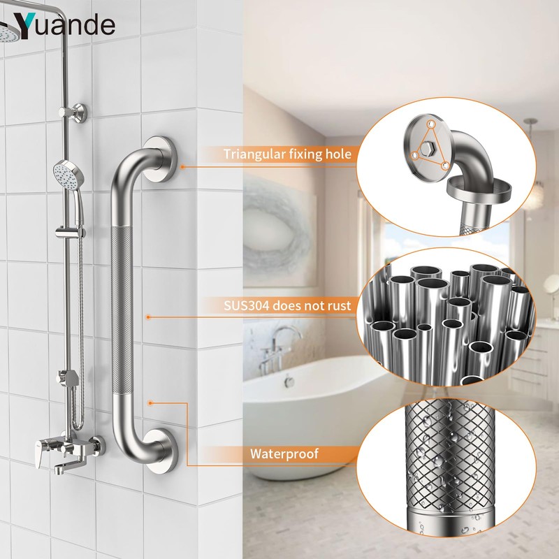 Upgrade bathroom safety with YuanDe's 20-inch stainless steel shower grab bar. Ideal for seniors and those with mobility challenges,ensuring a secure grip.Prioritize safety without compromising style-explore our extensive range of grab bars for elderly,handicap grab bars,safety handrails.