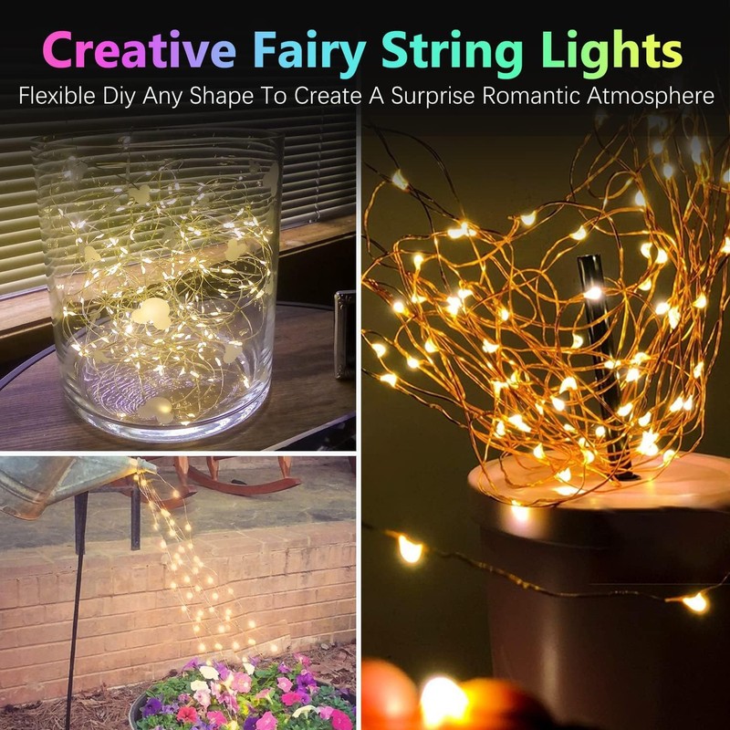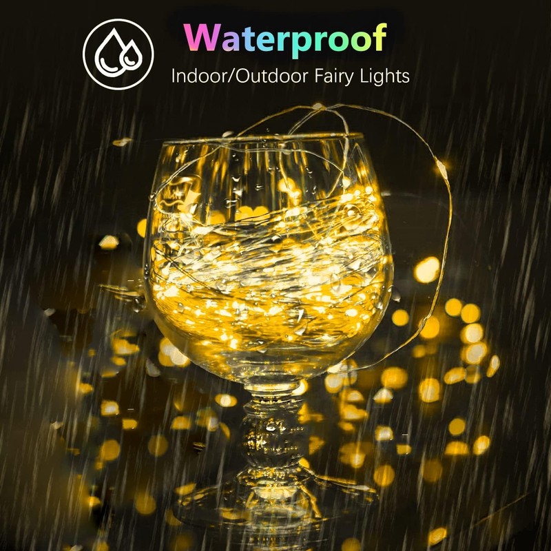 - 【Waterproof & Portable】- outdoor string lights come with IP44 waterproof rating (battery pack is not waterproof), you can easily carry and place the Fairy string lights anywhere you like. It’s splash-proof and suitable for rainy days and our-door use.