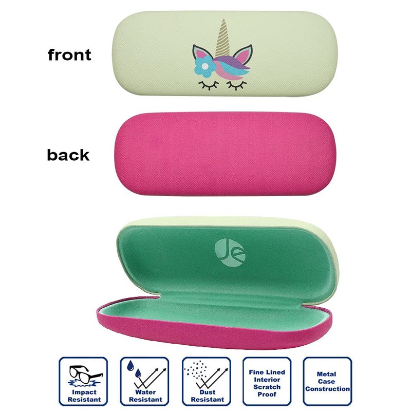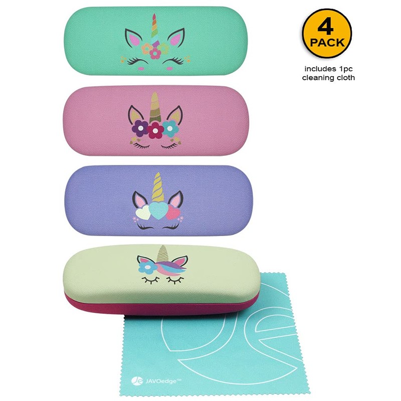 [4 PACK / 3 PACK], JAVOedge Printed Pattern Durable Hard Clamshell Eyeglass Case with Bonus Microfiber Cloth, Unicorn - Style C, 4 PACK