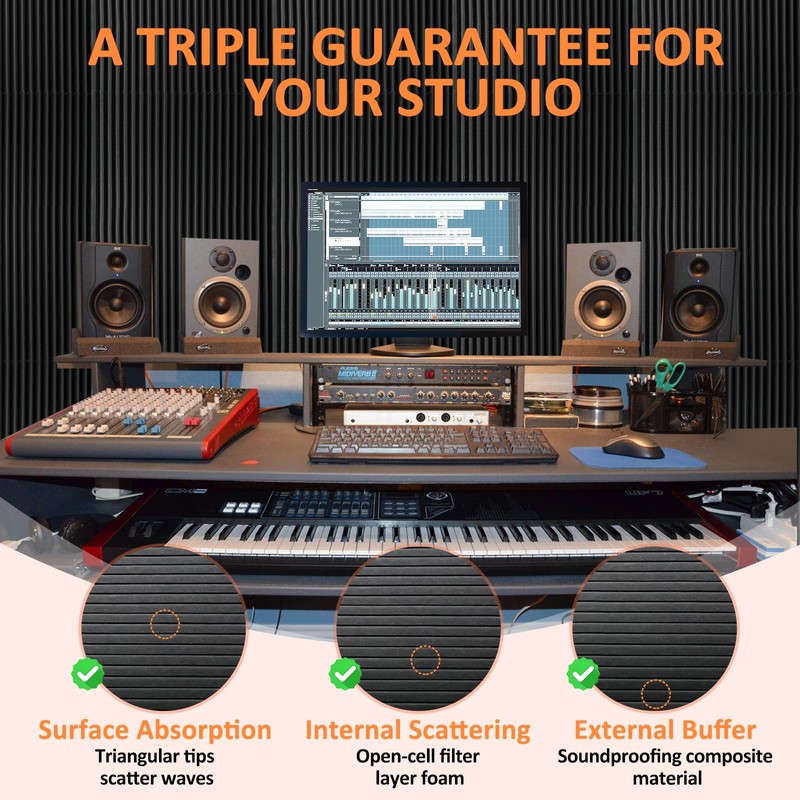 - 【Reduce Noise & Improve Sound Quality】These acoustic soundproof foam panels are designed to increase the contact area with sound, effectively reducing noises, echoes, and background sound, minimizing the interference of mid to low frequency sound, and significantly increasing sound clarity in the room.
