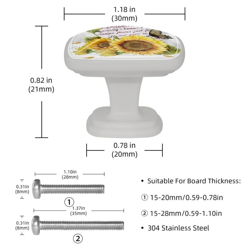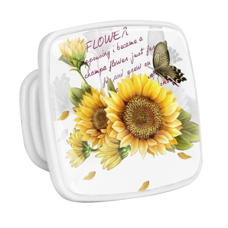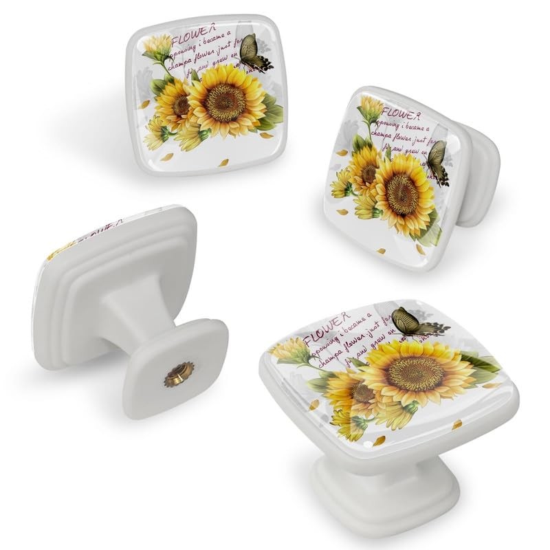 4 Pack Cabinet Knobs Yellow Sunflower Drawer Knobs, Kitchen Door Knobs Square Knobs for Furniture Dresser Cupboard Hardware Pulls Handles, Glowing in The Dark