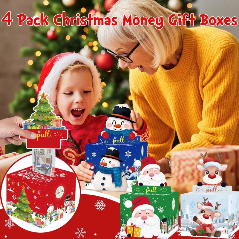 4 Pack Christmas Money Box for Cash Gift Pull, Surprise Green+red+blue