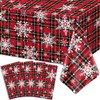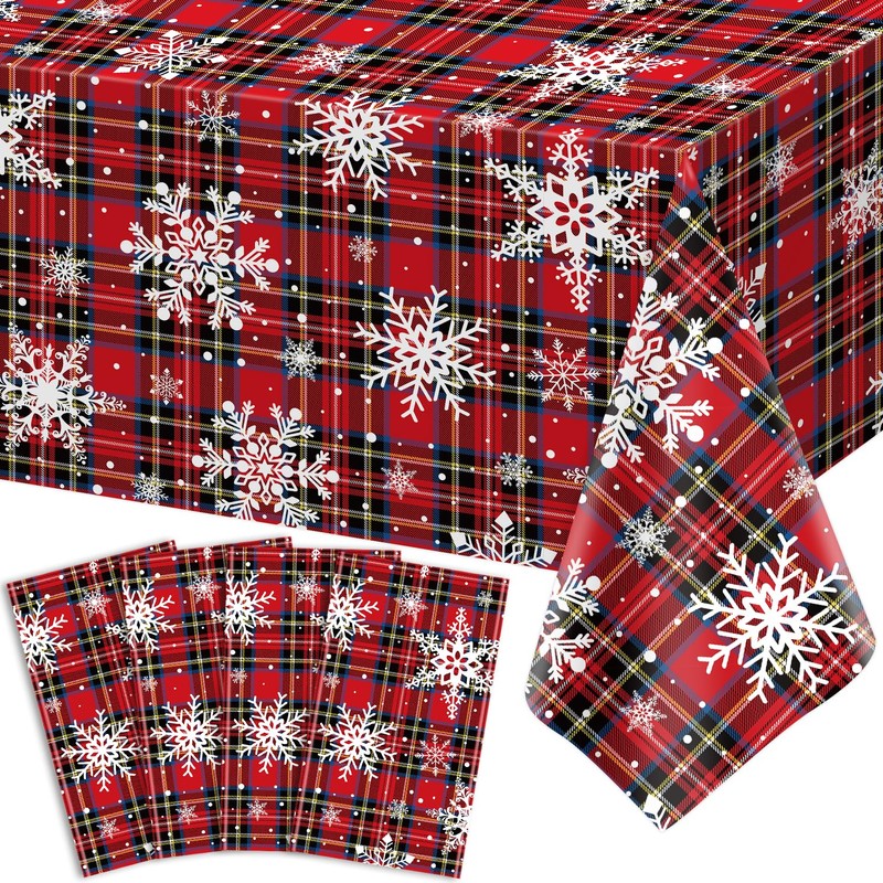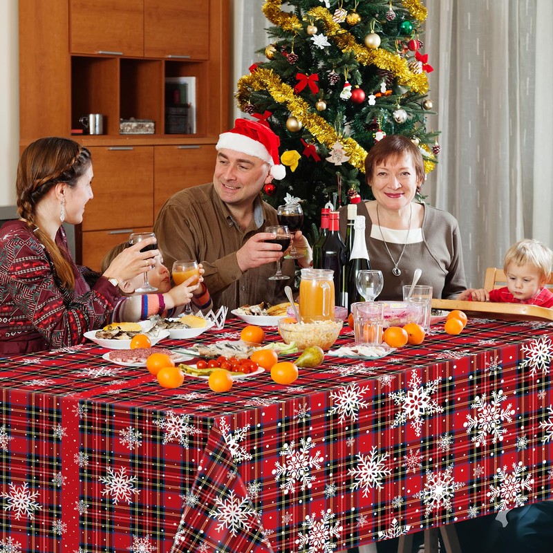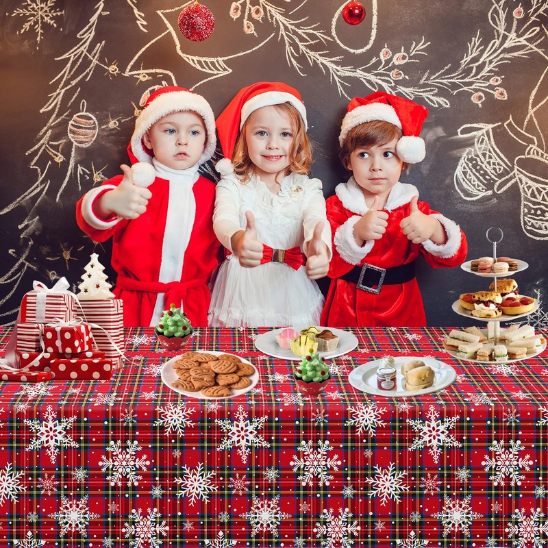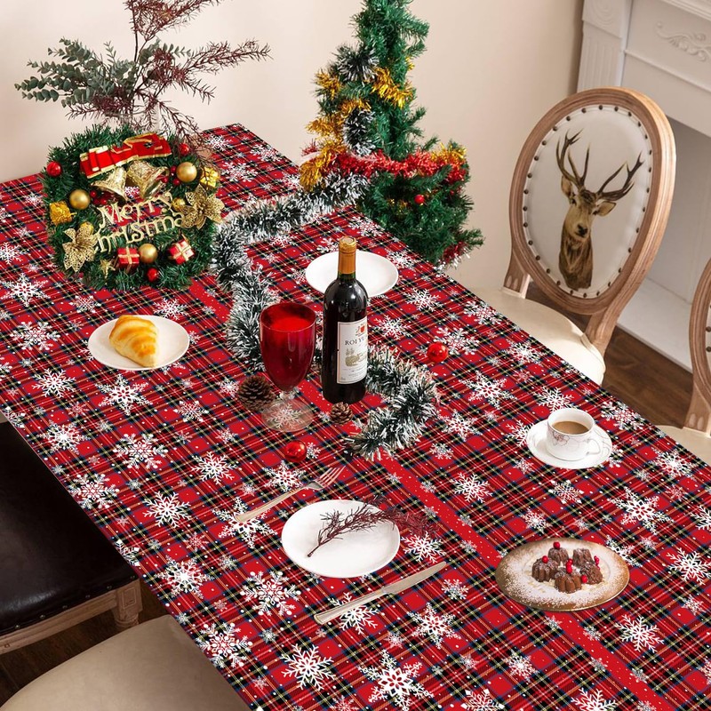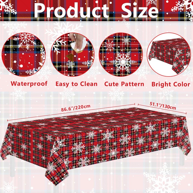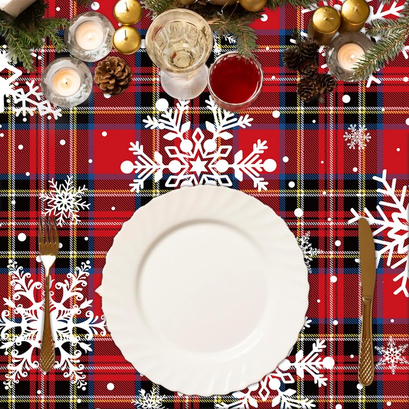 - 🎅Eye Catching Design: Christmas Red, black and blue checkered tablecloths are printed with plaid, many big and small white snowflakes, bright and colorful collocation and interesting. Will bring your party vitality and activities, create a Christmas party atmosphere, also ideal for daily use.