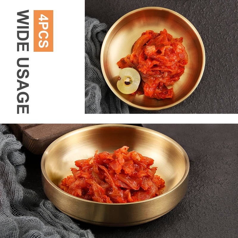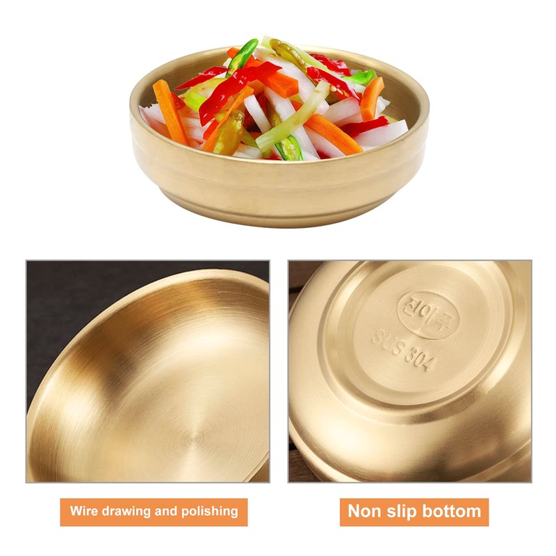 - Double Deck Design: Designed in double-deck and brushed process, the gold metal ramekins become more texture. Round shape makes it fit well in the palm and easy to grip. Flat bottom for more stable placement. Smooth surface adds a comfortable touch.