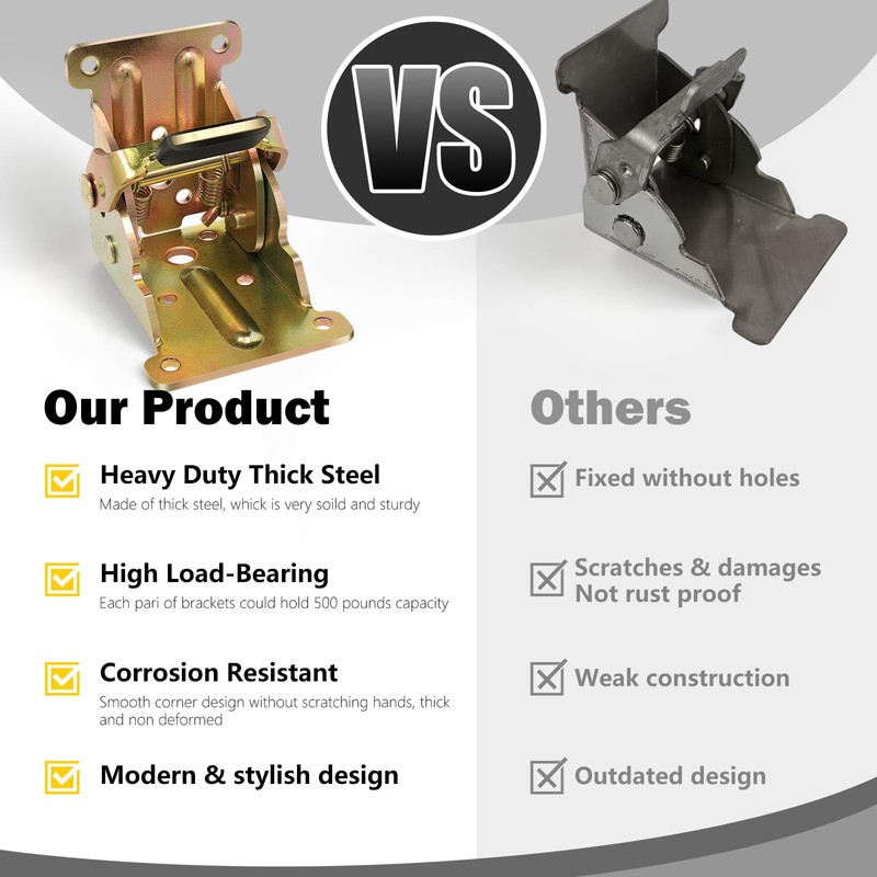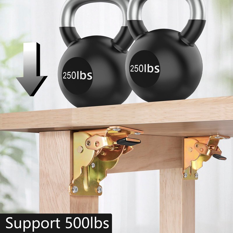 - HIGHT LOAD-BEARING: High-quality heavy duty design for folding table legs, each pair of brackets could hold 500 pounds capacity.