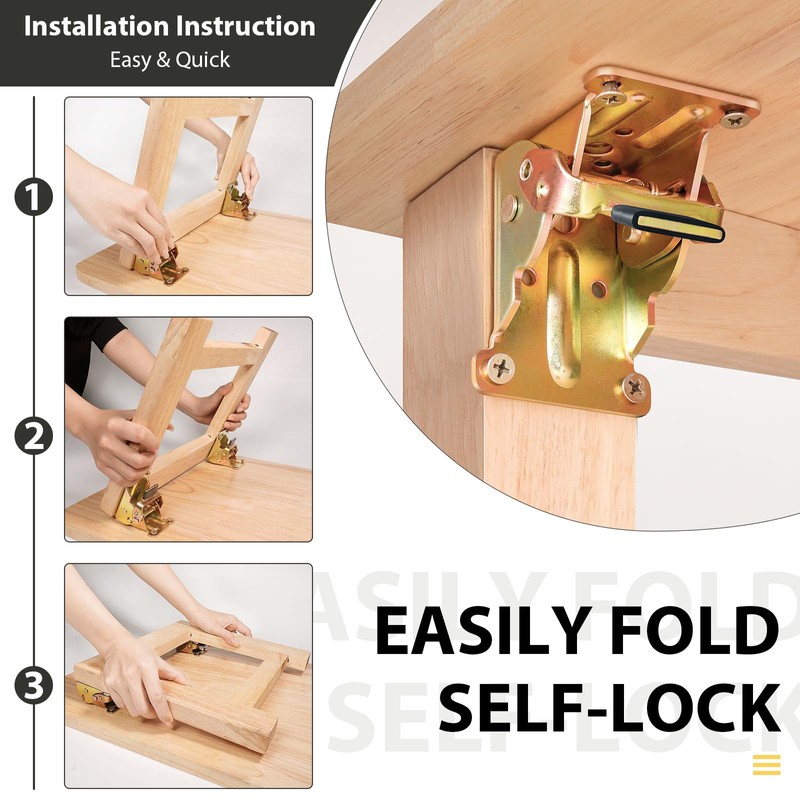 - Folding Brackets, Self-Lock Hinge with Screws for Folding Table Legs, Lock Extension Support Bracket Bed Legs, 4 Pack