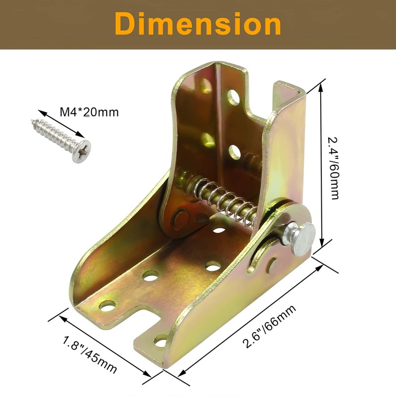 This folding bracket is crafted from extra thick stainless steel plate, ensuring it is both strong and durable. The high-quality material resists corrosion and wear, making it suitable for long-term use in various environments.The dimensions of the folding bracket are approximately 63x68x45mm (lengthwidthheight), with a substantial thickness of 2.3mm. When in the "up" position, the bracket forms a precise 90-degree angle, providing a stable and secure support structure.Featuring a sturdy structural design, each bracket is capable of supporting a weight of up to 500 pounds. This self-locking design ensures that the bracket remains securely in place when supporting heavy items, offering peace of mind and safety for your furniture. The versatility of this folding bracket makes it ideal for a wide range of applications. It is perfect for use with furniture legs, folding wooden beds, outdoor tables, dining tables, DIY platforms, workbenches, and wall supports. Its robust design and high weight capacity make it a reliable choice for both residential and commercial settings.For your convenience, this folding bracket comes with a complete set of 40 screws and detailed installation instructions. It's designed for easy installation, ensuring that you can set up your furniture with minimal effort. Please note that while it may be difficult to fold and release the bracket by hand before installation, the process becomes much easier once the bracket is attached to the table legs or other furniture pieces.Overall, this folding bracket is a reliable and durable solution for various furniture and support needs. Its high weight capacity, self-locking design, and ease of installation make it an excellent addition to any home or workshop.