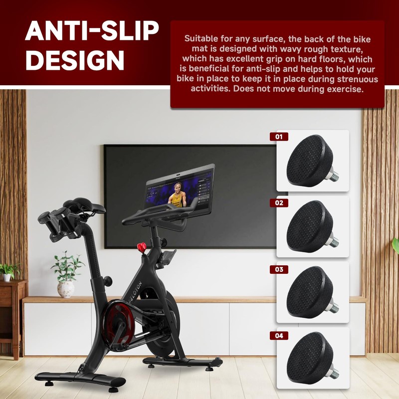 Rugged and durable for high-intensity workouts: Our exercise bike fixed support screw feet are made of rubber for premium durability and ultimate comfort. Designed to absorb vibration and protect your floors, it's the perfect companion for your Peloton bike. Say goodbye to scratches and enjoy a smooth ride!