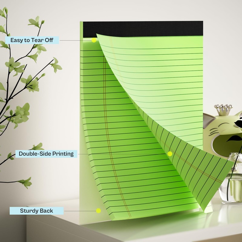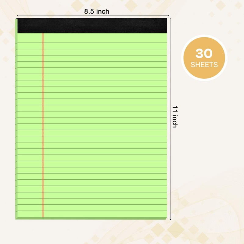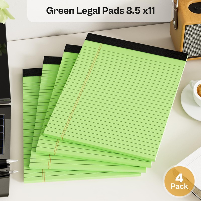 - 4 Pack Set — Each package contains 4 pack green wide ruled legal pads 8.5 x 11 Inch with 30 sheets. Providing a generous total of 120 sheets for your note-taking ,to-do lists or any writing needs at home, school, office